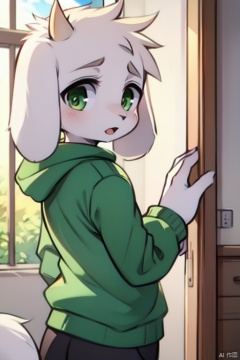 asriel,1boy,furry,green-eyes,green-clothes,SFW