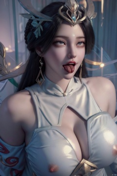 (masterpiece:1.3),(best quality:1.3),highres,1girl,mature female, milf,huge breasts,ahegao, rolling eyes, (open mouth:1.3),((tongue out)),naughty face,chinese_clothes,seductive_smile,