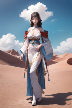 a girl,appear on camera,blue sky,blue sky,white cloud,full body,red dress,,Xyunluo,(big_breasts:1.23),Xningyudie, desert_sky,X-Hydrangea, hanfu