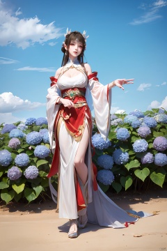 a girl,appear on camera,blue sky,blue sky,white cloud,full body,red dress,,Xyunluo,(big_breasts:1.23),Xningyudie, desert_sky,X-Hydrangea, hanfu,1girl