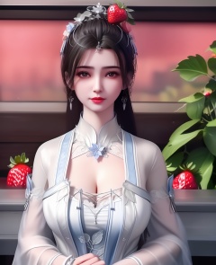 <lora:607-DA-仙逆-李慕婉-**:0.8>(,1girl, ,best quality, ),looking at viewer,masterpiece, (( , )),ultra realistic 8k cg, ,    ,cleavage,strawberry blossoms,lace , (cleavage), (),
