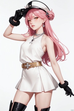 realistic style, cinematic work, 8k wallpaper, masterpiece, very realistic quality, best quality, masterpiece, high-level, high-resolution,,,edge lighting, dual tone lighting, soft lighting, the illuminated surface of the material has bright spots and highlights, which flicker and have a mirror effect when reflected, there are sparkling spots on the armor,,,1 girl, mature female, solo, full body, looking at viewer, lace, strong rim light, standard proportion of female body, golden proportion of female body,,,standing, standing posture, sexy full body standing posture,,,,(z25, 1girl, pink hair, long hair, yellow eyes, blush, hair ornament, very long hair, bangs, black headwear,hat, gloves, boots, armband, belt, black gloves, dress, bare shoulders, breasts, sleeveless, black footwear, small breasts, short dress, iron cross, knee boots, peaked cap, hand on headwear, adjusting clothes, white dress, fur trim, :1.2),,bare shoulders, off shoulder, black hairband, bikini bottom only, short dress, swimsuit, pleated dress, bikini, floating hair, blush, ass visible through thighs, skirt,white high-heeled shoes,:1.2),,,colorful,(detailed skin: 1.3), (detailed face: 1.3),clear focus,delicate,(mature women: 1.2),(glossy skin+glossy skin: 1.4),(sweating: 1.1),(big_eyes),red_ eyeshadow,long_ eyelashes, red lips,,,simple background, grey background,,,(diamond hair accessories, diamond necklaces, diamond earrings, diamond earrings, clothes embedded with diamonds, armor embedded with diamonds,:1.3),, , z25<lora:EMS-328200-EMS:0.280000>