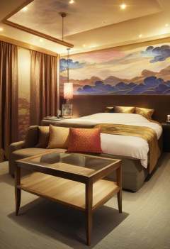 score_9, score_8_up, score_7_up, rating_safe, masterpiece, best quality, absurdres, unity 8k wallpaper, official art, official style, source_anime, uncensored, game cg, megami magazine,lovehotel, couch, indoors, table, scenery, lamp, pillow, carpet, curtains, rug, bed <lora:LoveHotel_C_PONY_V1:1>