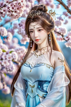masterpiece,(best quality),upper_body,,exploring cherry blossom branches,wonderland,light blue element, sly,Xsulingyun,(big breasts:1.59),Xtianxiwei,fantasy_butterfly, New Chinese_Hanfu,Xnangongwan, X-Hydrangea