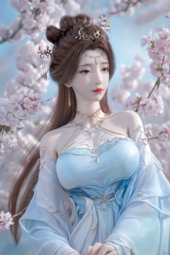masterpiece,(best quality),upper_body,,exploring cherry blossom branches,wonderland,light blue element, sly,Xsulingyun,(big breasts:1.69),Xtianxiwei,fantasy_butterfly, New Chinese_Hanfu,Xnangongwan, X-Hydrangea