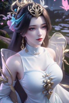 Best Quality, masterpiece, ultra-high resolution, (photo realistic: 1.4) ,A girl,silk,cocoon,spider web,Solo,Complex Details,Color Differences,Realistic,(Moderate Breath),Off Shoulder,Eightfold Goddess,Pink Long Hair,White Headwear,Hair,Earrings,Perfect Fit,Choker,Dim Lights,cocoon,transparent,jiBeauty,1girl,flowers,mtianmei,Look at the camera.,flowing skirts,Giant flowers,pld,(((Above calf))),(big breasts:1.29),,Xliushen,Xyunxi,Xhuolinger,X-Hydrangea,Hydrangea, ty-hd,depth of field