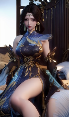3D,masterpiece,(best quality),(makeup),official art, extremely detailed cg 8k wallpaper,((crystalstexture skin)), (extremely delicate and beautiful),(highly detailed),(braided_hair),(hairpin),(1girl), (solo), (jewelry), (earrings),(black_hair),(long_hair),(hair_ornament),(handwear),(breasts),(sitting),(collar),,(upper_body),(multicolored_clothes),(multicolored_dress),(chinese_clothes),(adapted_costume),(sunshine, outdoor,bed),((looking_at_viewer)),((Facing the camera)),, <lora:hipoly3DModelLora_v10:0.3>