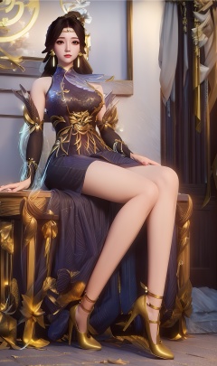3D,masterpiece,(best quality),(makeup),official art, extremely detailed cg 8k wallpaper,((crystalstexture skin)), (extremely delicate and beautiful),(highly detailed),(braided_hair),(hairpin),(1girl), (solo), (jewelry), (earrings),(black_hair),(long_hair),(hair_ornament),(handwear),(breasts),(sitting),(collar),,(full_body),(whole_body),(multicolored_clothes),(multicolored_dress),(long_dress),(long_skirt),(chinese_clothes),(adapted_costume),(long_legs),(sunshine, outdoor,bed),((looking_at_viewer)),((Facing the camera)),(gold_high_heels),(gold_shoes),, <lora:hipoly3DModelLora_v10:0.3>
