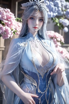 masterpiece,(best quality),official art,extremely detailed cg 8k wallpaper,(extremely delicate and beautiful),solo,realistic,photo_\(medium\),chinese clothes,blue dress,1girl,solo,blue eyes,earrings,mole,white hair,armor,crown,mole under eye,,Xningyudie,(big_breasts:1.29), Yunxiao_Fairy,X-Hydrangea,Xyupopo,(veil:1.23), 1 girl