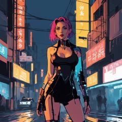 1girl, cyberpunk street, beautiful, masterpiece, realistic, standing, (smile:0.7), (rain:1.2), street, lineart, flat colors,  <lora:lineartSDXL:1>