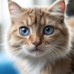 cute cat, animal focus, animal, hairy, blue eyes, realistic, whiskers, looking at viewer, depth of field