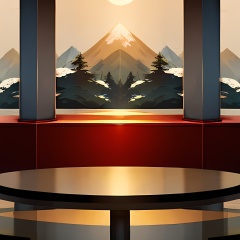 Minimalist chinese background,indoor,guest-greeting pine,round/square flat podium,Mountain,studio lights,stone,A circular screen with a mountain design/A solid color screen,A solid wall/A wall with a mountain pattern,empty flat podium,(best quality:1.2),(extremely detailed CG unity 8k wallpaper) <lora:zhantai-001-:1>