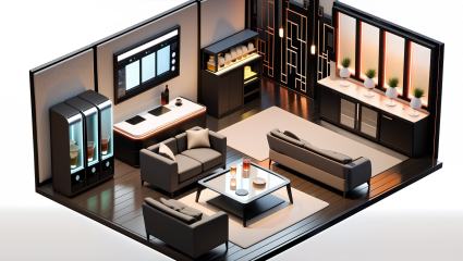 masterpiece,best quality,<lora:gamebg:0.5>,3d,white background,room-style,smooth white and silver tiles,LED strips,metal and glass walls,dynamic holographic projections,large smart glass windows,built-in LED lights,large round table,transparent touch glass surface,control panel,floating chairs,high-tech tea art robot,mechanical arms,soft lighting effects,transparent tea cabinets,various teas,tea sets,independent temperature and humidity control system,modern water dispenser,multiple water temperature options,comfortable low sofas,round tea tables,small projection device,smart lights,adjustable brightness and color,