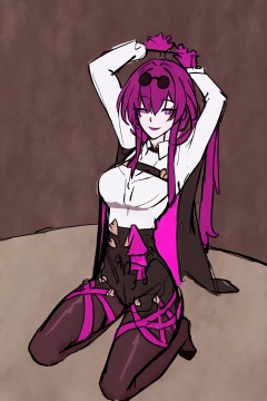 masterpiece, best quality,<lora:jpd:1>,sketch,<lora:kafka:1>,kafka (honkai: star rail),1girl,solo,eyewear on head,purple hair,long hair, purple eyes,purple gloves,black jacket,white shirt, collared shirt,long sleeves,black shorts,purple pantyhose, thigh boots, black footwear,smile, looking at viewer, seiza, arms behind head, eyewear on head, bed, full body,