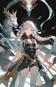 jinxi,a girl named jinxi,1girl,best quality,twintails,earrings,white thighhighs,dress,chinese clothes,white dress,black dress,short sleeves,smile,<lora:今汐pony:1>,style_1, (score_9,score_8_up,score_7_up),(masterpiece,best quality,high quality:1.2),absurdres, prefect lighting, very aesthetic, anime BREAK