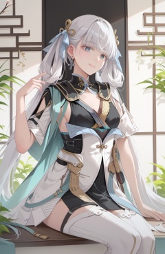 jinxi,a girl named jinxi,1girl,best quality,twintails,earrings,white thighhighs,dress,chinese clothes,white dress,black dress,short sleeves,smile,<lora:今汐pony:1>,style_1,, (score_9,score_8_up,score_7_up),(masterpiece,best quality,high quality:1.2),absurdres, prefect lighting, very aesthetic, anime BREAK