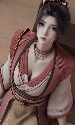 Hailey,high angle view of Hailey-type girl with brown high ponytail long hair and parted bangs wearing golden ZXH-type Hanfu,cleavage,large breast,NSFW,highly detailed,ultra-high resolutions,32K UHD,masterpiece,best quality,<lora:ZHUXIAN-Hailey-000019:0.9>,