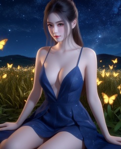 <lora:609-DA-XL-天行九歌-焰灵-水中:0.8>(,1girl, ,best quality, ),looking at viewer,  ,ultra detailed background,ultra detailed background,ultra realistic 8k cg, ,masterpiece, (( , )),,  fiction,mole, , ,      ,, 1girl,butterfly sitting,  night, star_\(sky\)(cleavage),