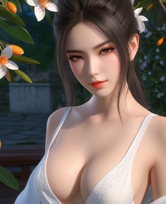 <lora:609-DA-XL-天行九歌-焰灵-水中:0.8>(,1girl, ,best quality, ),looking at viewer,  ,ultra detailed background,ultra detailed background,ultra realistic 8k cg,, ,masterpiece, (( , )),, ,      ,  orange blossoms,  (cleavage), (), ,,