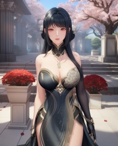 <lora:610-DA-战双帕弥什-含英·檀心:0.8>(,1girl, ,best quality, ),looking at viewer,  ultra detailed background,ultra realistic 8k cg,ultra detailed 8k cg,masterpiece,upper body,  (( , )),, ,science fiction,mole, ultra realistic 8k cg, ,    ,outdoors, sun,sunlight, cherry blossoms,      (cleavage), (),