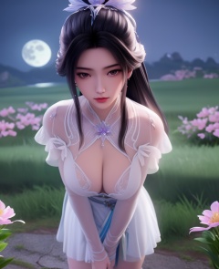 <lora:611-DA-诛仙-陆雪琪-V3:0.8>(,1girl, ,best quality, ),looking at viewer,  ,ultra detailed background,ultra detailed background,ultra realistic 8k cg,, ,masterpiece, (( , )),, ,   ,   cure blossom, full moon,night,night sky,  (cleavage), (), ,,