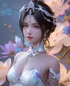 <lora:613-DA-XL-神印王座-白玥:0.8>(,1girl, ,best quality, ),looking at viewer,,anime,(masterpiece, top quality, best quality, official art, beautiful and aesthetic:1.2), (1girl)	, , (cleavage),extreme detailed,(fractal art:1.3),colorful, flowers ,highest detailed,(by Jeremy Lipking)    (cleavage), (),