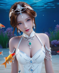 <lora:613-DA-XL-神印王座-白玥:0.8>(,1girl, ,best quality, ),looking at viewer,masterpiece, ((((, solo,  goldfish, ,solo focus, ,underwater, )))) ,ultra realistic 8k cg,   clean, masterpiece,     cinematic lighting, cinematic bloom,  (( , )),, , unreal, science fiction, luxury, jewelry, diamond, gold, pearl, gem, sapphire, ruby, emerald, intricate detail, delicate pattern, charming, alluring, seductive, erotic, enchanting, hair ornament, necklace, earrings, bracelet, armlet,,(cleavage),