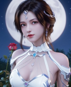 <lora:613-DA-XL-神印王座-白玥:0.8>(,1girl, ,best quality, ),looking at viewer,masterpiece, (( , )),, realistic,science fiction,mole, ultra realistic 8k cg, full moon,  rose,(cleavage), (),