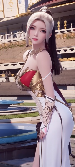lingmeier, 1girl, solo, looking at viewer, wedding dress , white hair, cowboy_shot, realistic,masterpiece,best quality