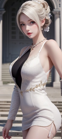 lingmeier, 1girl, solo, looking at viewer, wedding dress , white hair, cowboy_shot, realistic,masterpiece,best quality