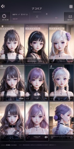 Game interface,Game mechanics,4+game feature icons,Card deck,each card row has corresponding text information and numbers,labels,dress,long hair,3+girls,black hair,blonde hair,braid,white dress,holding,mirror,long sleeves,hair ornament,jewelry,earrings,Indoor,Fantastic scenes,(((High quality))),8k,masterpiece,moody lighting,day,Purple Theme,Shining,Stars,Women Towards,button,tab,((logo)),<lora:huanqing_yinvyouxi:0.8>,