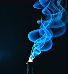 Mysterious image capturing the dance of smoke under a spotlight, smoke tendrils swirling gracefully, cool blue color palette, dark background, sharp focus on the illuminated smoke, abstract, ethereal quality, simple composition, inspired by moody atmospheric photography, high quality.