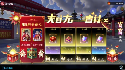 The frame of the game is designed as a red Spring Festival couplet, with golden clouds and firecrackers on the edge. The box displays the current celebration mission and reward progress. On the left are quests completed and New Year's items obtained