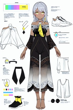 multiple views, pencil sketch, (sketch:1.25), (loli), ((no shoes)), shy, best quality, graphite \\(medium\\), ske, gradient, rainbow, note, Line draft, highres, absurdres, (ultra-detailed:1.1), (illustration:1.1), (infographic:1.2), pajamas, (all clothes configuration:1.15), (solo), perfectly drawn hands, standing, cohesive background, paper, action, (character design:1.1), <lora:Out-opening-style-clothing 脖颈向外敞开绕背上身衣服服装:0.75>, breasts apart, revealing clothes, groin, halterneck, <lora:Carol-v100-000019:0.8>, Carol, 1girl, dark-skinned female, dark skin, yellow eyes, grey hair, <lora:Anime Lineart ,Manga-like (线稿,線画,マンガ風,漫画风) Style:0.4>, <lora:sketchy:0.2>, [[delicate fingers and hands:0.55]::0.85], (detail fingers), (empty hands:1.1), bare_hands, (beautiful_face), ((intricate_detail)), (revealing clothes:1.2), clear face, ((finely_detailed)), fine_fabric_emphasis, ((glossy)),