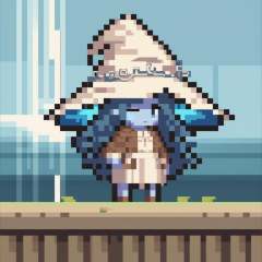 score_9, score_8_up, score_7_up, source_anime, 1girl, chibi, pixel art, full body, <lora:ChibiPixelArtV2_XLPD:1>, <lora:Ranni_XLPD_CAME:1> IncrsXLRanni, wavy hair, cracked skin, blue skin, colored skin, extra arms, extra faces, doll joints, white dress, witch hat, brown cloak, outdoors, one eye closed,