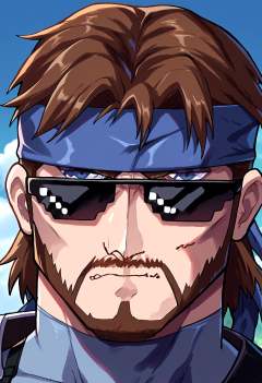score_9, score_8_up, source_anime, 1boy, incrsxldealwithit, sunglasses, <lora:DealWithIt_XLPD:1>, <lora:solidsnake-pdxl-nvwls-v1:1>, solidsnake, brown hair, beard, facial hair, headband, blue bodysuit, mature male
