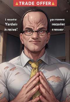 score_9, score_8_up, source_anime, 1boy, tradeoffermeme, own hands together, upper body, <lora:TradeOfferMeme_XLPD:1>, <lora:SenatorArmstrongPDXL_V1-Manityro-CAME:1> SenArmStrong, grey eyes, black hair, buzz cut, glasses, manly, muscular male, white shirt, torn clothing, torn shirt, yellow necktie, veins,