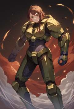 score_9, score_8_up, score_7_up, source_anime, 1girl, solo, OnoderaKosaki, <lora:OnoderaKosaki_XLPD:1>, <lora:masterchief-halo-richy-v1_pdxl:0.8> masterchief, power armor