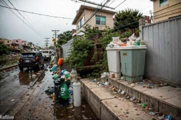 RAW photo,subject,8k uhd,dslr,soft lighting,high quality,film grain,Fujifilm XT3,,ruanyi0042,no humans,bottle,box,bucket,building,cardboard box,cup,fence,food,lamppost,paper bag,plant,plastic bag,power lines,road,rubble,ruins,soda can,street,traffic light,trash bag,tree,window,,<lora:0042 garbage city_v2:1>,<lora:detail_slider_v4:1>