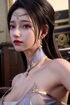 1girl, solo, jewelry, water, hair ornament, forehead mark, earrings, necklace, facial mark, realistic, tube top, looking at viewer, mischevious smile, perfect body, scenery, sharp focus, best quality, masterpiece, detailed outfit, illustration, perfect eyes, finely detailed beautiful anime eyes, realistic skin, intricate details, best lighting, depth of field, ultra high resolution,upper_body, dynamic pose, dynamic angle,Xchengling, ,(big breasts:1.23),hanfu,Xyunxi,Xhuolinger,Xliushen,Xchulingyu,Xchengling,Xliushen,Xyunxi