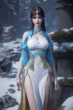 photo_\(medium\),(8k, RAW photo, best_quality),(masterpiece:1.2),(realistic:1.2),(photorealistic:1.3),(ultra-detailed),(extremely_detailed_cg_8k_wallpaper),(crystal_texture_skin:1.3),(shiny:1.2),(shiny_skin:1.4),(extremely_delicate_and_beautiful),shenfengFengQingEr,white clouds,1girl,solo,chinese clothes,torogao,dress,breasts,(large breasts:1.4),clothing cutout,detached sleeves,standing,red lips,jewelry,hair ornament,earring,necklace,realistic,looking at viewer,<lora:shenfengFengQingEr_20240702223756-000004:0.7>,
