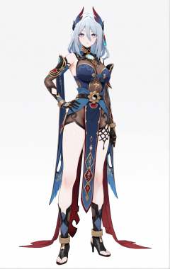 8k, best quality, masterpiece, (ultra-detailed:1.1), (high detailed skin), art by komone_ushio, komone_ushio, art by komone ushio, artist:komone ushio, (full body), white background, standing, looking at viewer, (solo:1.2), hand on hip, 1girl, <lora:hanxue-kohaku-Tanger-000011:0.7>, hanya, hanya's def clothes, 1girl, breasts, high heels, long hair, toeless footwear, (beautiful_face), ((intricate_detail)), clear face, ((finely_detailed)), fine_fabric_emphasis, ((glossy)), full_shot,