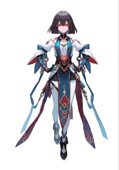 score_9, score_8_up, score_7_up, score_6_up, 8k, 8k, best quality, masterpiece, (ultra-detailed), (high detailed skin), white background, simple background, (full body), (white background), standing, looking at viewer, (solo), hand on hip, <lora:hanxue-pony-Tanger:0.8>, xueyi, xueyi's def clothes, 1girl, black footwear, red eyes, black hair, beautiful_face, intricate_detail, clear face, finely_detailed, fine_fabric_emphasis, full_shot,