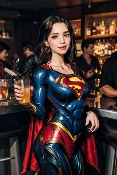 Bar photo,1girl,earrings,(superman:1.3),film and television characters,golden long hair,jewelry,best qualtiy,masterpiece,movie-level quality,<lora:20240115-1705331714218-0020:0.5>,drink,smile,cann,drink,<lora:add_detail:0.3>,