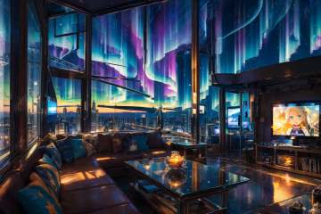 ktv,<lora:20240122-1705863851919-0002:0.6>,aurora,building,city,city lights,cityscape,constellation,earth \(planet\),galaxy,light particles,milky way,night,night sky,planet,scenery,shooting star,sky,skyscraper,snow,space,star \(sky\),starry sky,window,