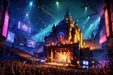 best qualtiy,masterpiece,movie-level quality,castle,<lora:20240317-1710689677412-0008:0.7>,festival,led screen,stage performance,gorgeous stage lighting,a cheering crowd,