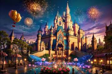 best qualtiy,masterpiece,movie-level quality,castle,<lora:20240317-1710689677412-0008:0.8>,disney amusement park,balloon,flower,fireworks,blooming colorful fireworks,fairy tale world,colorful,