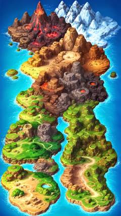 (overview Angle ultra realistic thick paint :1.5)(Pictographic Island :1.5),volcanoes,glaciers,swamps,storms,deserts,sky continents,<lora:sdxl_ditu:0.8>,