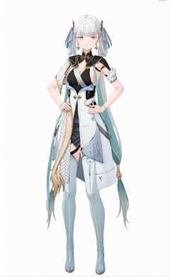 score_9, score_8_up, score_7_up, 8k, best quality, masterpiece, (ultra-detailed), (high detailed skin), (white background:1.6), (full body:1.2), (white background), standing, looking at viewer, (solo:1.2), hands on hips, <lora:Jinxi-A3-Tanger:0.8>, Jinxi, Jinxi's def clothes, 1girl, jewelry, dress, long hair, white hair, mole under eye, (beautiful_face), ((intricate_detail)), clear face, ((finely_detailed)), fine_fabric_emphasis, ((glossy)), full_shot,