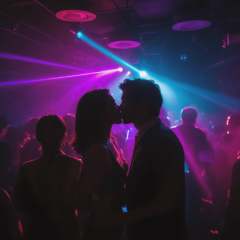 underground club,(kissing close-up in club:1.2),(Kissing lovers:1.5),light and shade contrast,Beam light,laser light,reflection,best qualtiy,movie-level quality,<lora:20240704-1720095833344:0.6>,masterpiece,